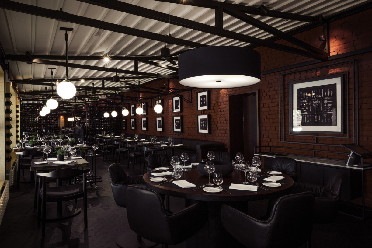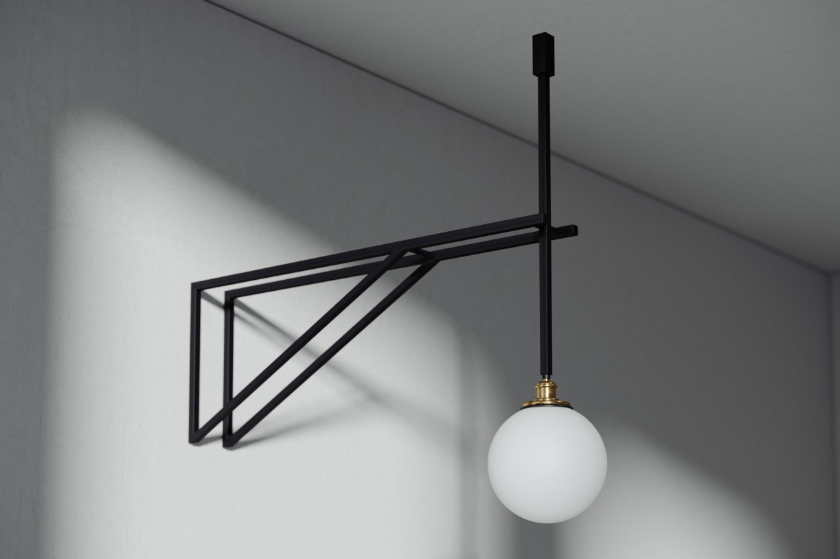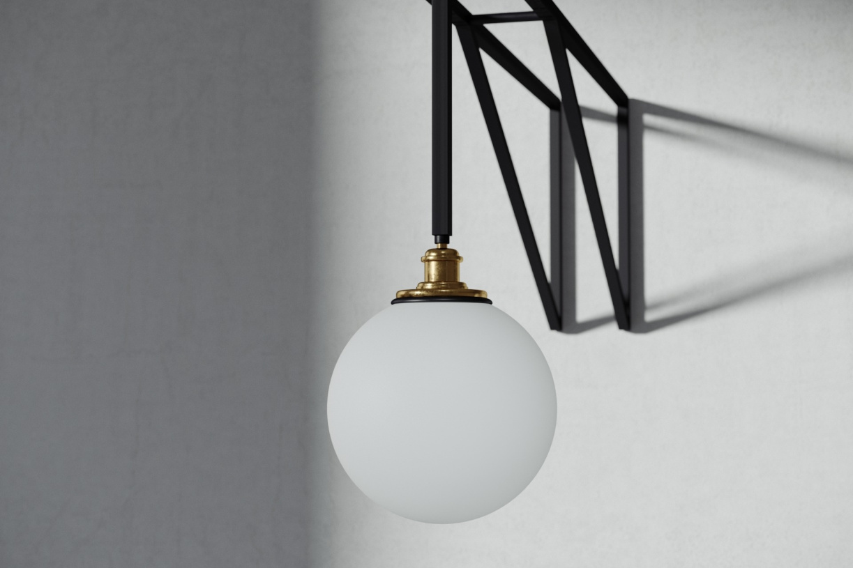 Steel-and-brass ceiling lamp.